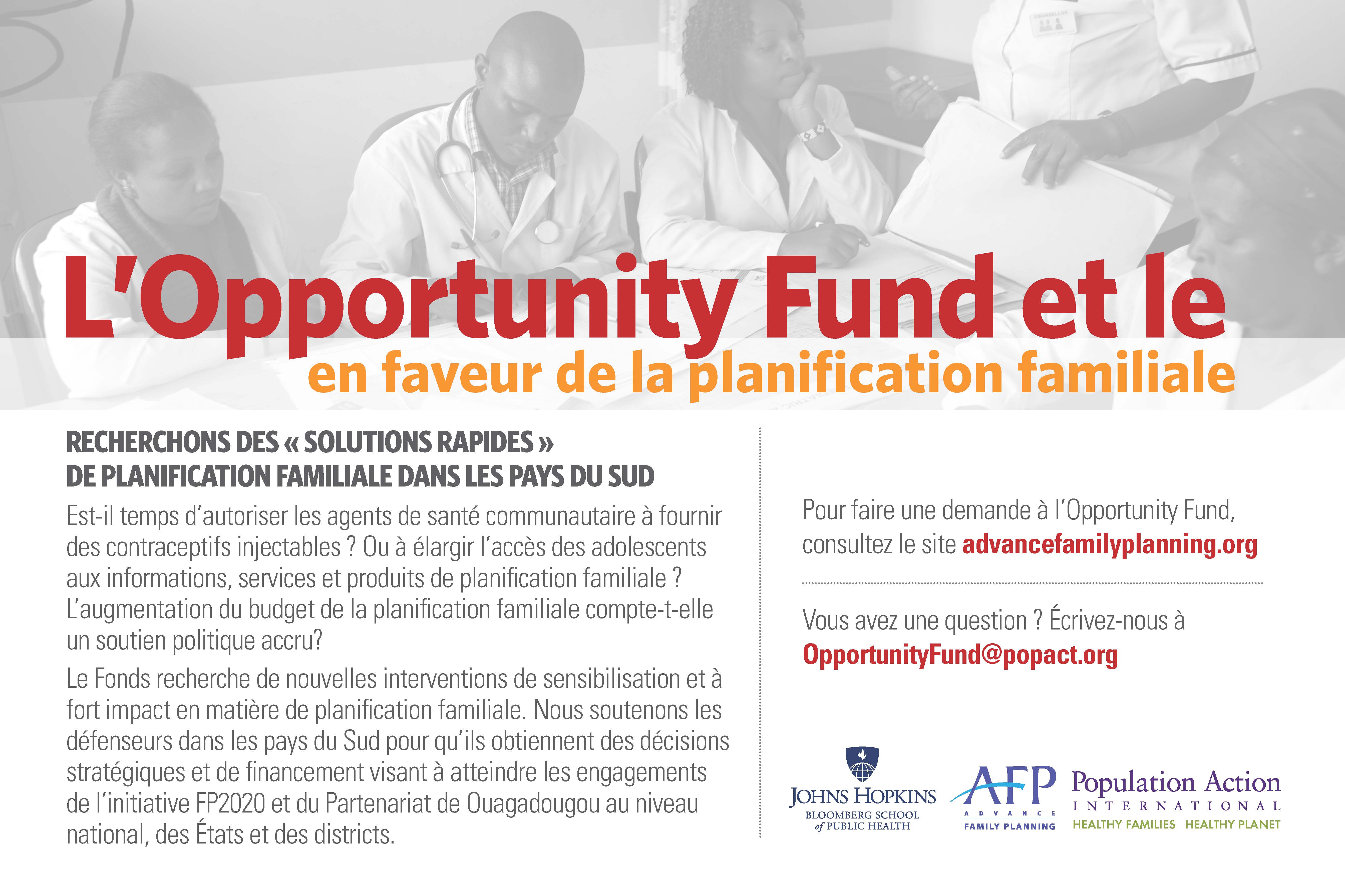 The Fund is in search of emerging, high-impact advocacy efforts for family planning. We support advocates in the Global South to secure policy and funding decisions aimed at achieving FP2020 and Ouagadougou Partnership commitments at national, state and district levels.